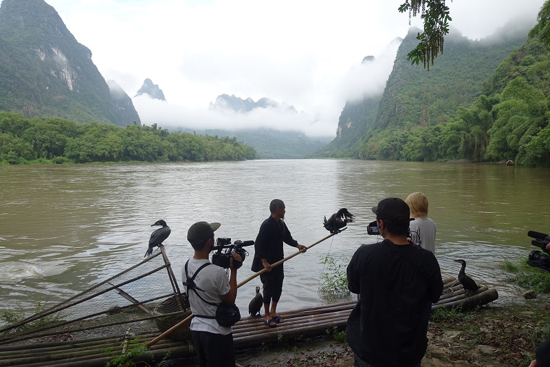 摄制组在漓江拍摄鸬鹚捕鱼