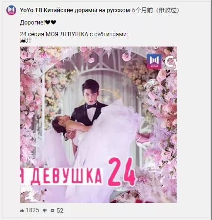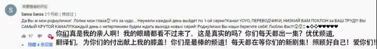 在国内热播的剧集《暴风眼》《司藤》《爱的理想生活》等,也正在优优YouTube俄语频道热播。俄罗斯用户也非常喜欢这些热播剧,对剧集更新速度、配音质量等都非常认可。