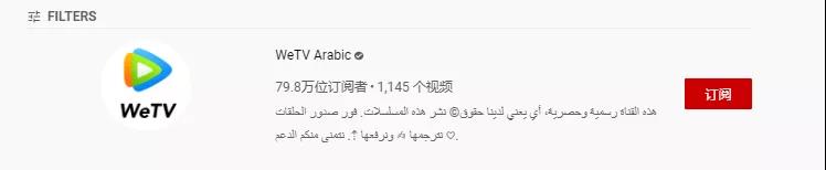 截至2021年3月下旬,世纪优优运营的YouTube阿拉伯语频道订阅用户达到124万人,总观看次数超过4.8亿次。腾讯视频阿拉伯语频道订阅用户达79.8万,累计发布视频1145个。华策影视运营的YouTube阿拉伯语频道订阅用户达50.7万,在其运营的小语种频道中位居第一。