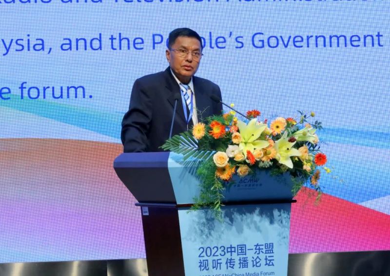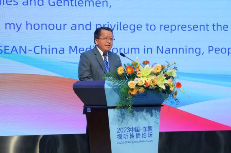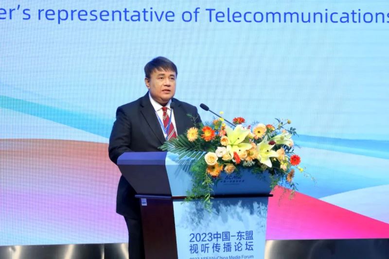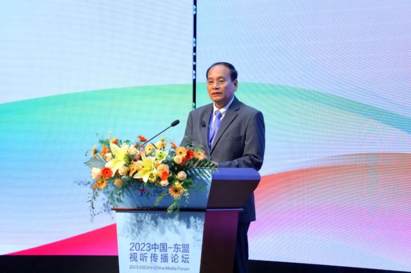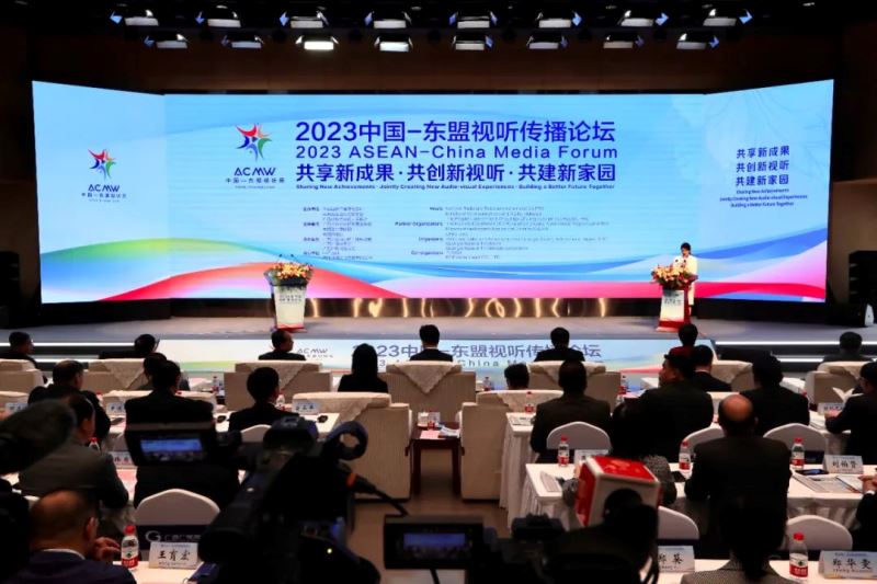 10月23日,第五届中国—东盟视听周重要活动之一, 2023中国—东盟视听传播论坛在广西南宁成功举办。以“共享新成果、共创新视听、共建新家园”为主题,论坛分为主旨演讲、主题发言、圆桌对话三个阶段,同时举办“一对一”商务洽谈会,现场设置广电视听展。国家广播电视总局副局长杨小伟,广西壮族自治区党委常委、宣传部部长陈奕君,马来西亚通讯与数字部部长代表、马来西亚广播电视台台长拿督苏海米·苏莱曼,柬埔寨新闻部副国务秘书庞纳斯,老挝新闻文化旅游部副部长万西·库阿玛,缅甸宣传部副部长吴耶廷出席论坛并分别致辞,广西壮族自治区人民政府副主席苗庆旺出席论坛,来自中国和东盟国家广电视听领域的嘉宾共300人参加论坛。