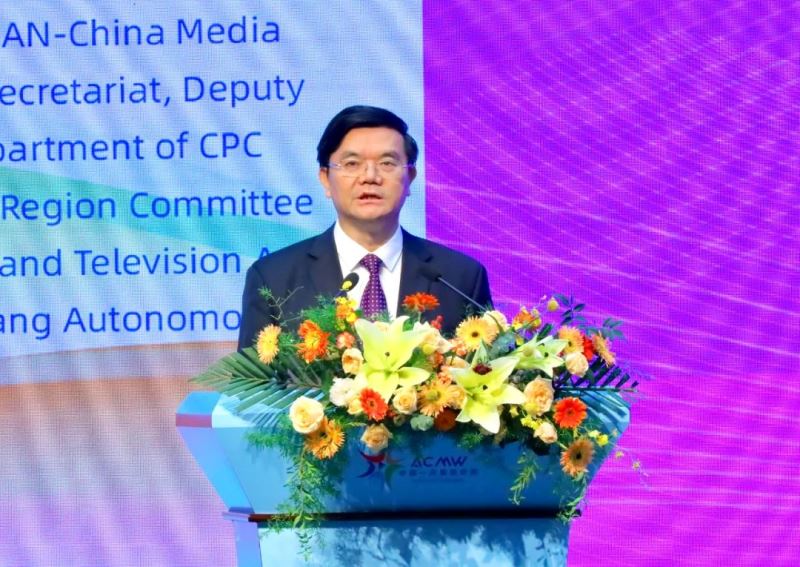 中国—东盟视听周组委会秘书长、广西壮族自治区党委宣传部副部长、广西壮族自治区广播电视局局长满昌学在以《发挥区位优势,开创新时代中国—东盟视听传播交流新局面》为题的演讲中表示,广西广电系统积极深化中国—东盟媒体交流合作,通过中国—东盟视听周平台打造了以广西为枢纽,中国—东盟视听传媒机构广泛参与,视听作品双向传播的交流合作新格局,愿携手中国—东盟媒体继续拓宽友好合作新领域,共同开创视听媒体交流合作和创新发展的美好未来。