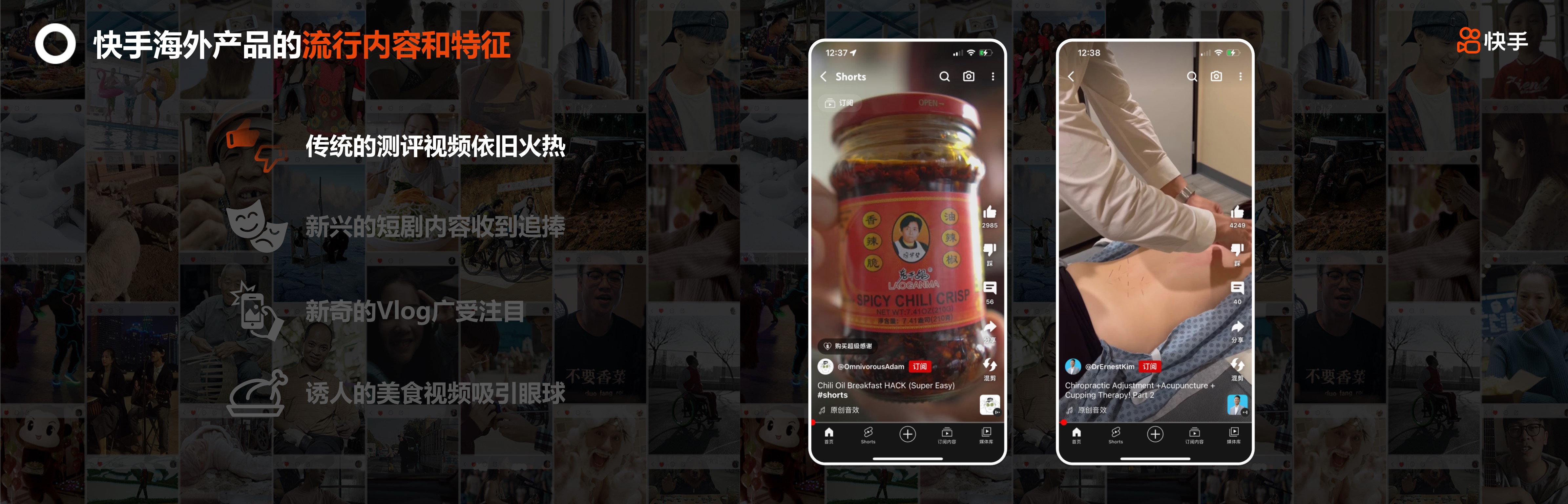 测评类视频一直是国外短视频中的暴款。由于其测试与测评十分注重体验,也包括各种产品的极限挑战,产品的新奇度和实用度往往会成为国外网红关注的重点。中国商品物美价廉,中国传统商品和一些国内“黑科技”产品在国外短视频上受到追捧,类似充电宝、手机支架等国人常用物件经常在国外网友中引起关注。一个典型案例是“老干妈”,这种来自中国的辣酱已经成为国外的美食奢侈品。关于如何用“老干妈”做好美食的问题,在海外短视频上也出现许多测评。此外,一些中国的传统技艺也引起国外网友的好奇心,针灸、拔火罐、刮痧等传统手艺类的体验和测评短视频非常受欢迎。