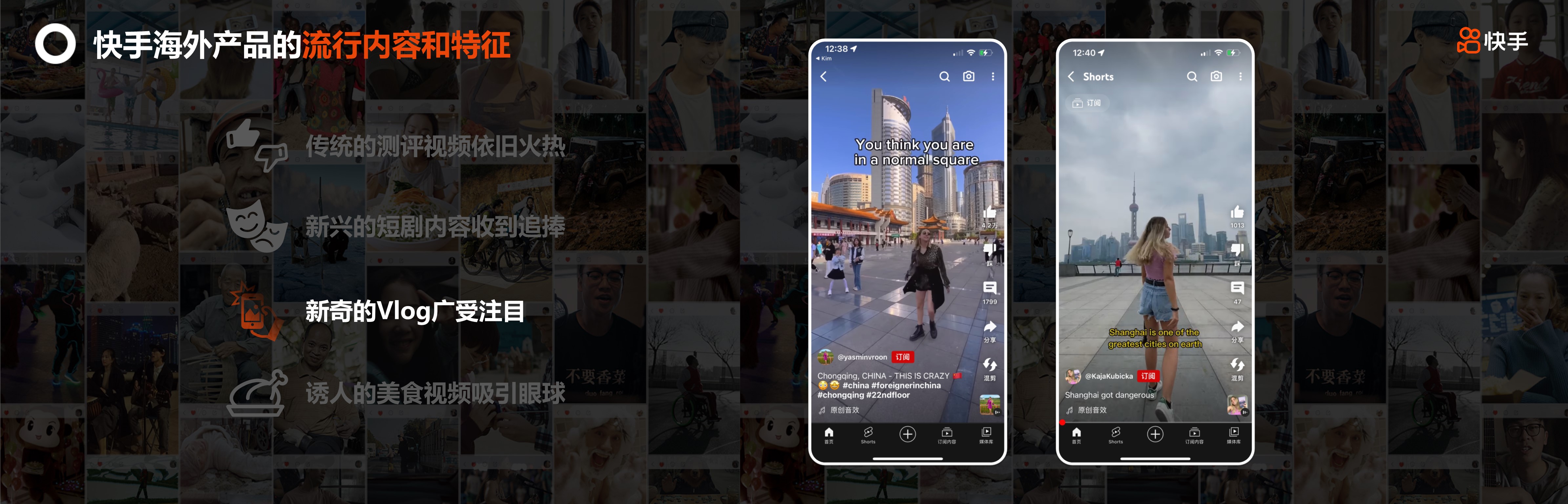 Vlog市场由外国留学生首先打开,主要因为他们处在文化差异、语言不同的大环境下,常常会觉得缺乏归属感。Vlog可以陪伴他们度过日常生活中无聊枯燥的时光,缓解他们内心的焦躁不安,发现生活中美好的另一面。这种简单、真实记录生活的短视频模式受到广泛欢迎,来自异国他乡的留学生们,将记录到的中国瞬间分享到短视频平台上,受到国外网友喜爱,这种真实的影像记录,也让未曾到过中国的海外朋友感受到鲜明的中国特色。
