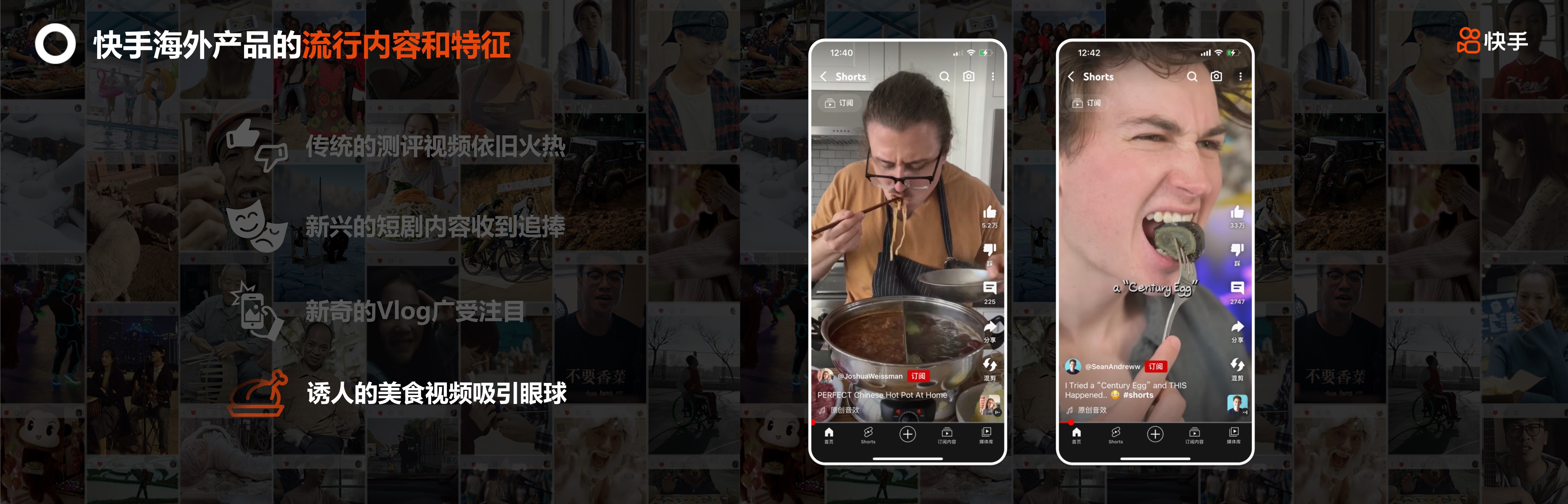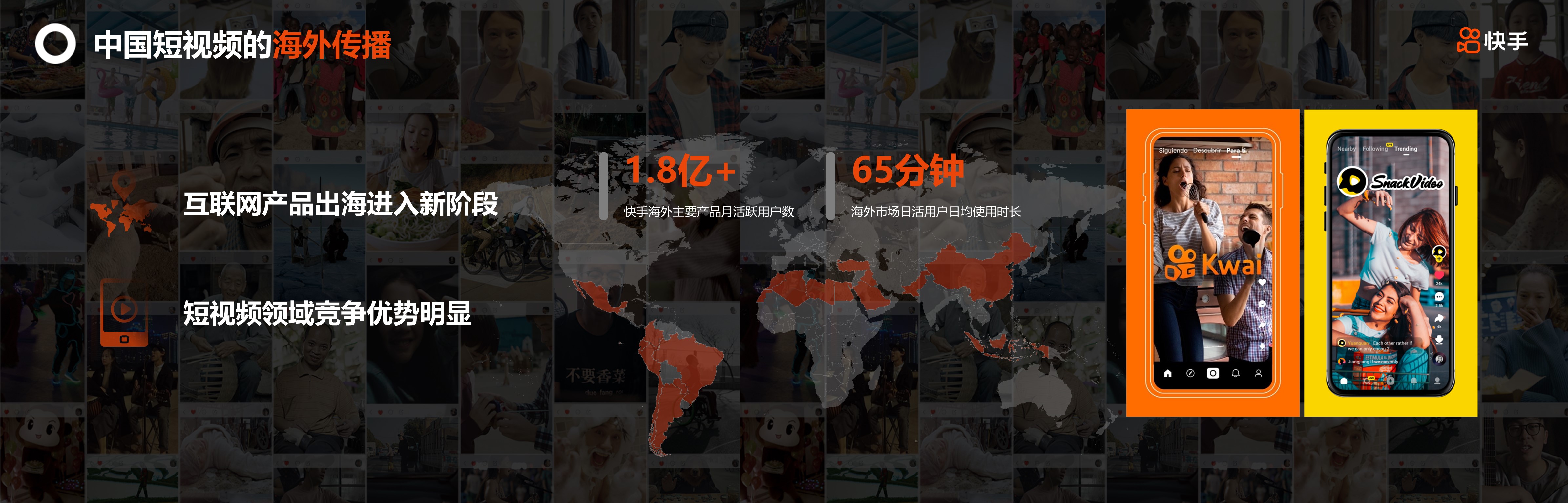 2017年快手推出海外国际版(Kwai)应用,主要面向拉美和中东市场。2019年快手推出海外产品Snack video,主要服务对象为东南亚和南亚市场。两款产品都曾在当地谷歌应用(Google Play)和存储App Store取得过第一名的好成绩。目前,快手海外主要产品月活跃用户超过1.8亿。截至2022年4月,海外市场日活跃用户日均使用时长增长至65分钟以上。