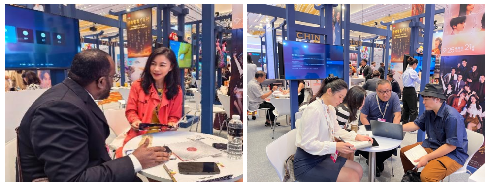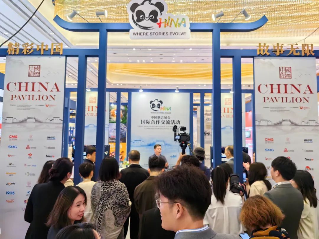中国联合展台国际交流活动开幕仪式结束后,国家广播电视总局电视剧司副司长杨铮逐一与各家展商进行了走访,就内容创作、海外传播、衍生品开发、参展情况等进行交流。