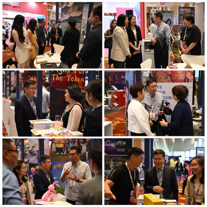 活动首日,国家广播电视总局电视剧司副司长杨铮,新加坡国家发展部兼通讯及新闻部高级政务部长Mr Tan Kiat How,组委会RX Global亚太区总裁Mr Yeh Chien Ee等莅临中国联合展台,通过参观、专题会谈及参加国际交流活动开幕仪式等,详细了解中国联合展台参展作品及中国视听产业发展现状。新加坡国家发展部兼通讯及新闻部高级政务部长Mr Tan?Kiat How在参观完中国联合展台后表示:“我们看到了非常丰富的中国影视作品,以及技术赋能下的中国视听产业正在高质量发展,我们期待两国在视听领域有更深入的合作?!弊槲酭X Global亚太区总裁Mr Yeh Chien Ee在双方专题会谈中表示:“很感谢中国一直以来积极参与ATF,中国的文化历史源远流长,有很多精彩故事可以展现给世界,我们看到了非常多元化的中国视听作品,我们期待在更多国际展会上与中国合作”。