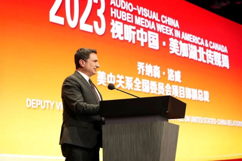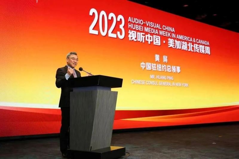 当地时间12月13日下午,由湖北省人民政府指导,湖北省委宣传部、湖北省广播电视局联合主办的2023视听中国·美加湖北传媒周开幕式暨系列活动在美国纽约成功举办。中国驻纽约总领事馆总领事黄屏、副总领事钱进,纽约市长顾问顾彼得、加拿大多元文化媒体联盟副主席兼秘书长金宏、美中关系全国委员会有关负责人乔纳森·洛威出席并致辞,加拿大联邦参议员胡子修、万锦市副市长陈国治视频致辞,湖北省委宣传部副部长、省广播电视局党组书记、局长张世华致欢迎辞,湖北省委宣传部副部长陶宏家,湖北日报社、湖北广播电视台、长江出版传媒股份有限公司、湖北长江电影集团、知音传媒集团负责人,武汉、恩施、天门、潜江市广电局、台负责人,以及湖北省广播影视、网络视听、新闻出版行业企业代表与纽约、多伦多文化传媒界知名人士共300多人参加。活动集中展示了近年来湖北文化传媒发展成果,传播了荆楚优秀文化,推动了文明交流互鉴,促进了民心互联互通,受到社会各界高度评价。