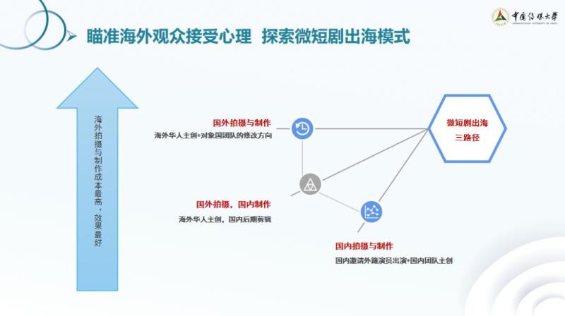 微短剧海外传播时,为匹配当地观众的审美偏好,有三种制作方式:请外籍模特或演员在中国拍摄并制作;在海外拍摄素材后,到中国进行后期制作;全部在国外完成。从成本来看,三种方式依次递增。