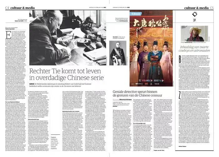 荷兰知名媒体《新鹿特丹商报》近日整版刊发题为《荷兰汉学家创作的大唐狄公立志征服全球》的深度报道,并配发影评,对优酷正在热播的网络剧《大唐狄公案》给予肯定?!缎侣固氐ど瘫ā肥呛衫甲钣杏跋炝Φ娜毡ㄖ唬站⑿辛?1.8万份,位居荷兰第四。