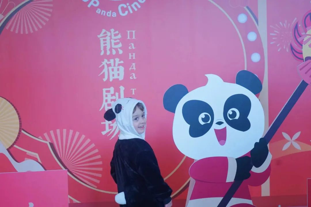 图为活动现场身穿熊猫服装的俄罗斯小朋友