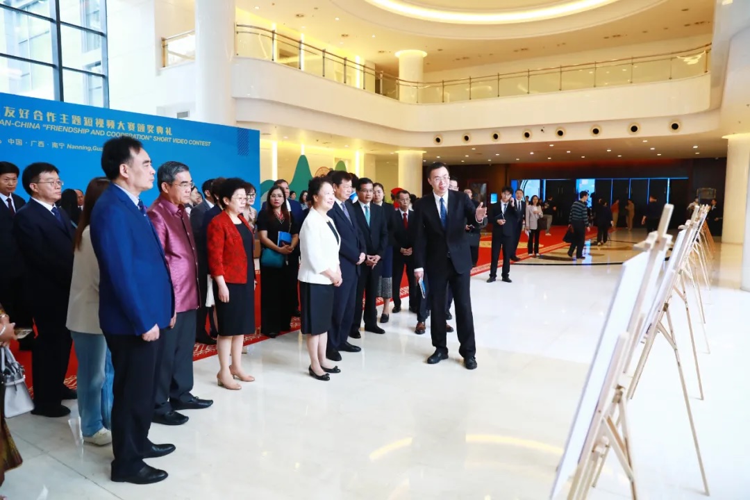 ▲活动前,与会领导嘉宾参观第四届中国—东盟友好合作主题短视频大赛优秀作品图片展及非遗展。
