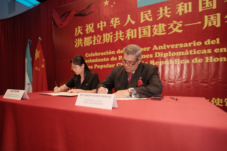 大会上,重庆佳左影视文化传媒有限公司驻洪都拉斯代表钟柳姿女士与洪都拉斯6台台长(中美洲电视广播公司总裁)华金·诺达斯·巴内加斯先生共同签署“中国时段”合作备忘录。这一重要的合作备忘录标志着中洪两国在传媒视听领域的合作迈入了固定时段固定栏目常态化播出的新阶段。