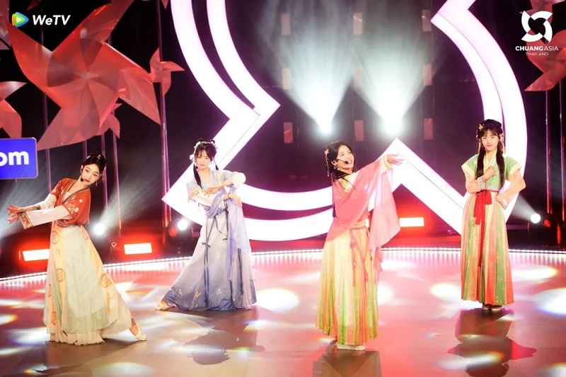 中国学员田轩宁、曾雪瑶、袁珂、完颜嘉怡在节目中表演国风舞台《寻一个你》