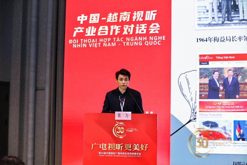 4月24日,中国—越南视听产业合作对话会在第三十届中国国际广播电视信息网络展览会(CCBN2024)期间举办。此次活动由广电总局国际合作司与越南通信传媒部国际合作司共同主办。国家广播电视总局广播电视科学研究院承办,北京市广播电视局、广西壮族自治区广播电视局、云南省广播电视局协办。来自中越政府主管部门、媒体机构和视听平台的80余名代表与会,围绕中越视听平台管理和生态治理、中越视听平台建设与合作及中越影视节目内容合作等三个议题展开深入交流。国家广播电视总局国际合作司司长周继红出席论坛并致辞。