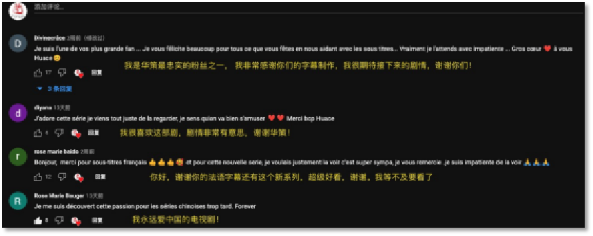 法国当地潮流趋势类网站K-Sélection推荐的十部必看中国电视剧,5部来自华策法语频道,包括《以家人之名》《三生三世十里桃花》《亲爱的热爱的》《我只喜欢你》等,并表示:“在过去的几年里,中国电视剧在剧情和娱乐方面一直很精彩,涉及的话题往往十分有趣,让观众着迷于屏幕。”法国影视评论网SensCritiques推荐的必看中国电视剧中,有多部来自华策法语频道,包括《长歌行》《致我们单纯的小美好》《杉杉来了》等。