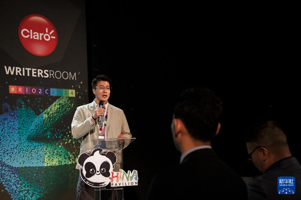 6月6日,在巴西里约热内卢,中国广播电视国际经济技术合作有限公司国际交流部副主任冯博在推介会上发言。新华社发(克劳迪娅·马尔提尼摄)
