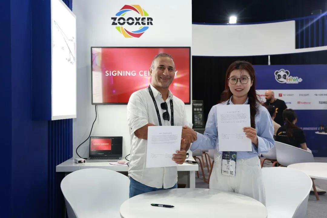 展会期间,北京注色影视科技有限公司与伊朗Fanavari Behin Media Electronic 公司(Shahin Tavakoli)就电控伸缩摄像摇臂(Leopard telescopic crane)和 Gazelle智能摇臂机器人签订产品销售意向协议,销售金额约100万元人民币;与迪拜MALU公司(DWC)就智能轨道机器人签订产品销售意向协议,销售金额约60万元人民币。