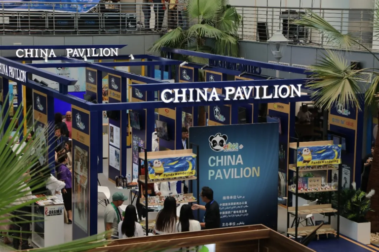 电视节期间,“中国联合展台”在线平台还举办“福建时间”“佳平影视专场”“金熊猫奖推介”等特色活动,并在“中国联合展台”设置中国文创产品展示区,沉浸式推介优秀影视作品,中国展台成为全场焦点。同时,在中国联合展台在线平台同步上线阿拉伯广播电视节云端展厅,吸引对中国内容感兴趣的阿拉伯同业者通过在线平台云端展厅浏览、接洽更多中国优质内容。电视节期间,中国联合展台还举办了中阿视听合作论坛暨“视听中国”优秀节目推介会,中阿双方就视听合作开展深入交流。