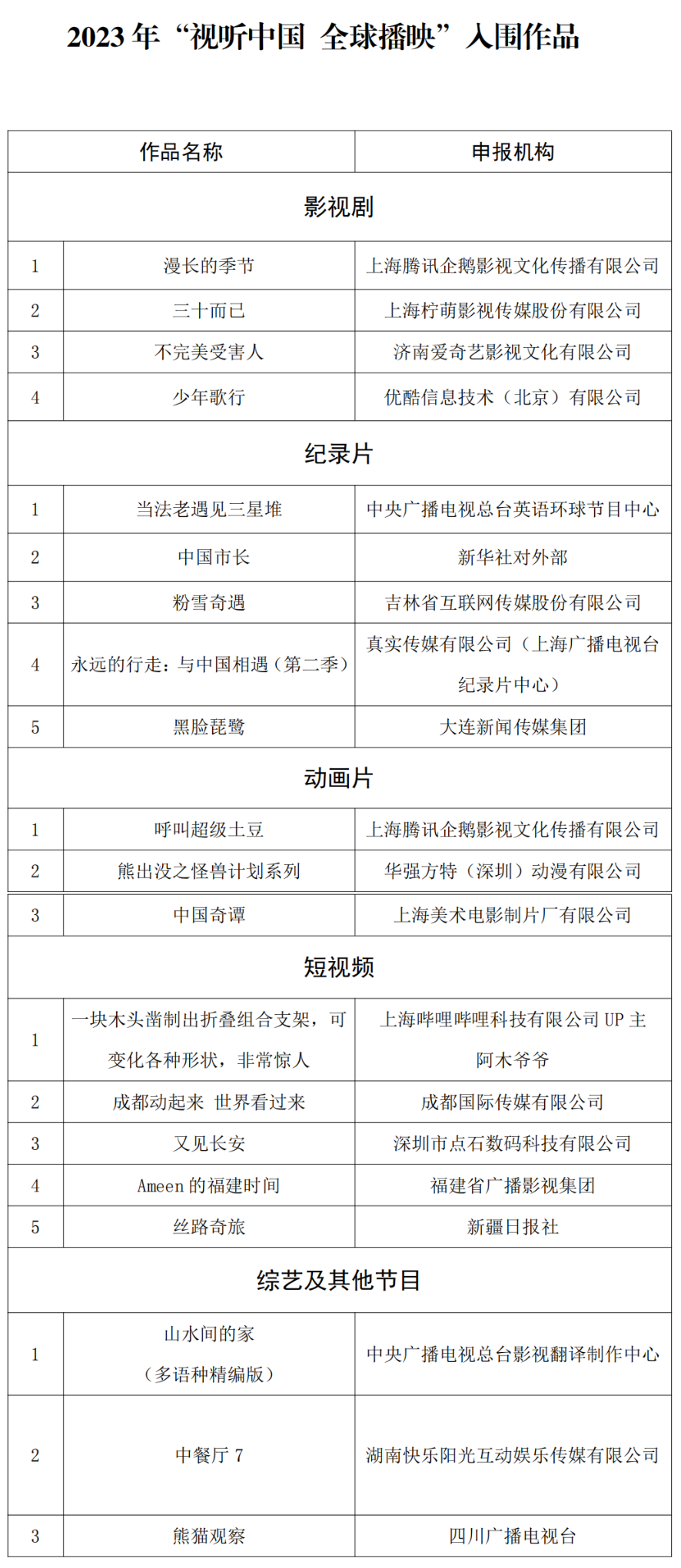 2023年“视听中国 全球播映”优秀作品、入围作品和优秀推广机构评选结果正式发布
