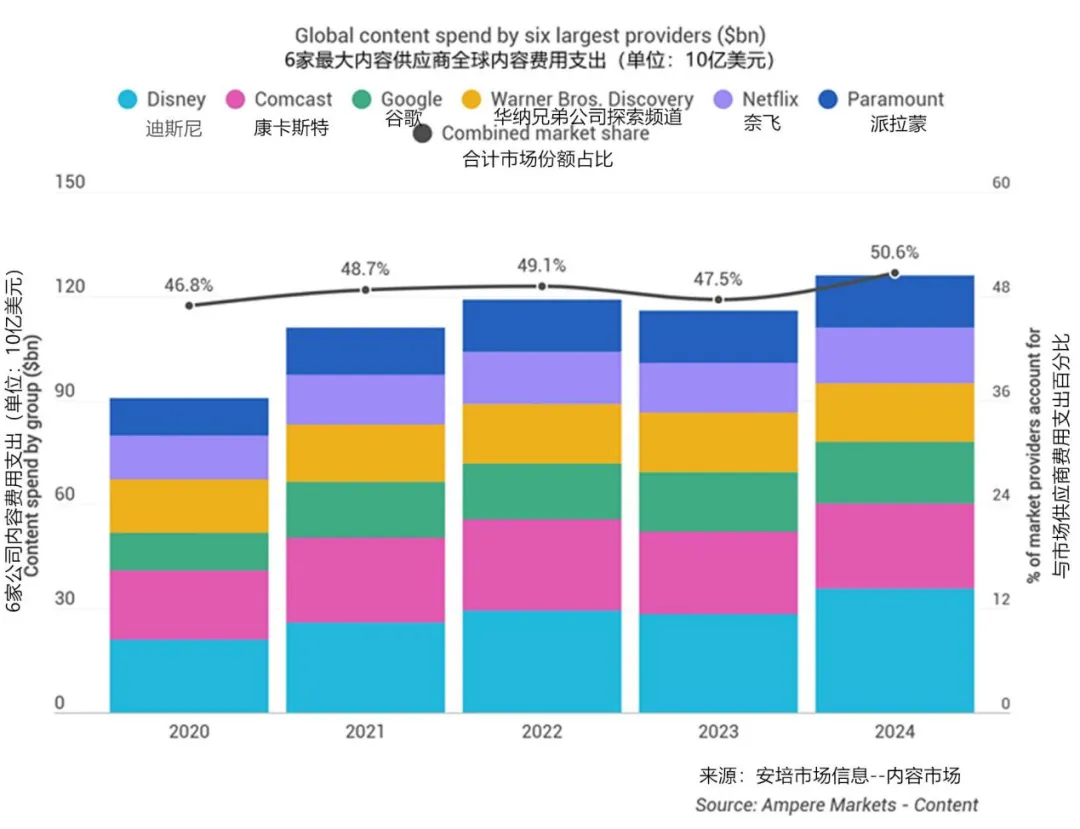 安培最新信息显示,6家全球顶尖内容供应商今年费用支出创新高