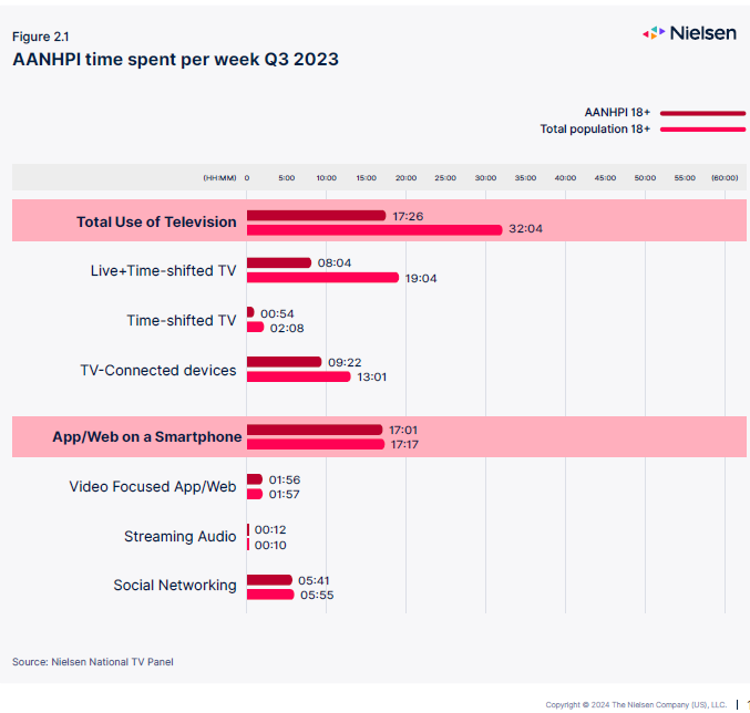 美国亚裔观众在电视和智能手机上花的时间几乎相等