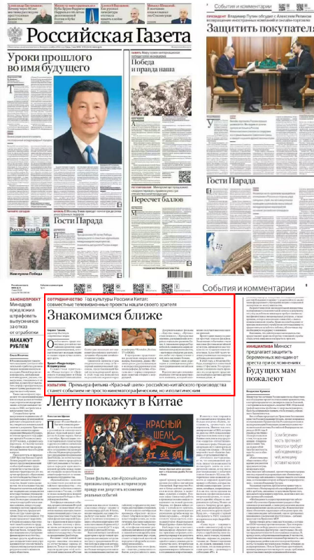 同日,俄罗斯主流媒体《俄罗斯报》刊发俄罗斯现代媒体研究所所长基里尔·塔纳耶夫评论文章《中国影视节目走进俄罗斯视听平台 为两国青少年架起友谊的桥梁》。文章指出,《熊猫剧场》每年为俄罗斯观众带来超过100小时的精彩纷呈的中国影视节目。这些影视剧、纪录片和动画片为俄罗斯青少年打开了感知中国历史和文化的窗口,栩栩如生地展现了古今中国的独特风貌,进一步加深了对彼此的了解与认知。