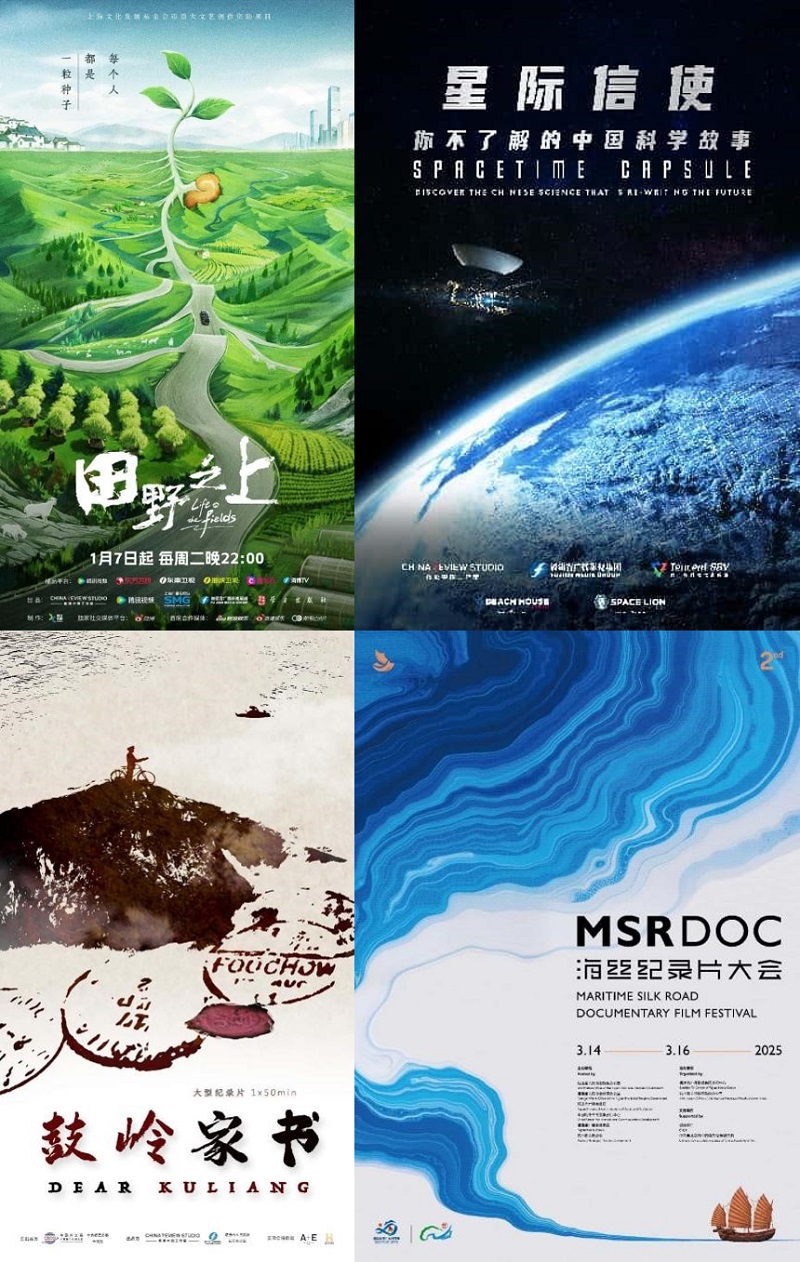 《田野之上》《星际信使》《鼓岭家书》以及海丝纪录片大会宣传海报