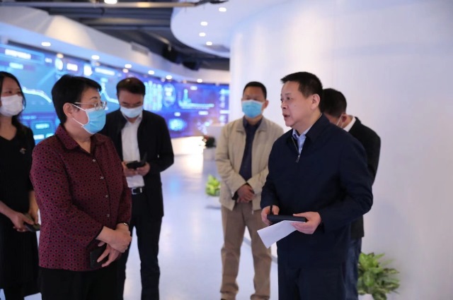 新华网党委常委、总编辑钱彤,新华网首席运营官、总裁助理孙巍,新华网数字影视制作和展览中心总经理张祺、运营总监葛菁陪同李秋芳理事长一行参观考察了新华网融媒体数字展厅。