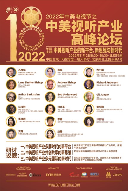 由国家广电总局国际司、中国驻洛杉矶总领事馆指导,中华广播影视交流协会将与中美电视节组委会、中国电视剧制作产业协会、首都广播电视节目制作业协会联袂主办2022中美视听产业高峰论坛。