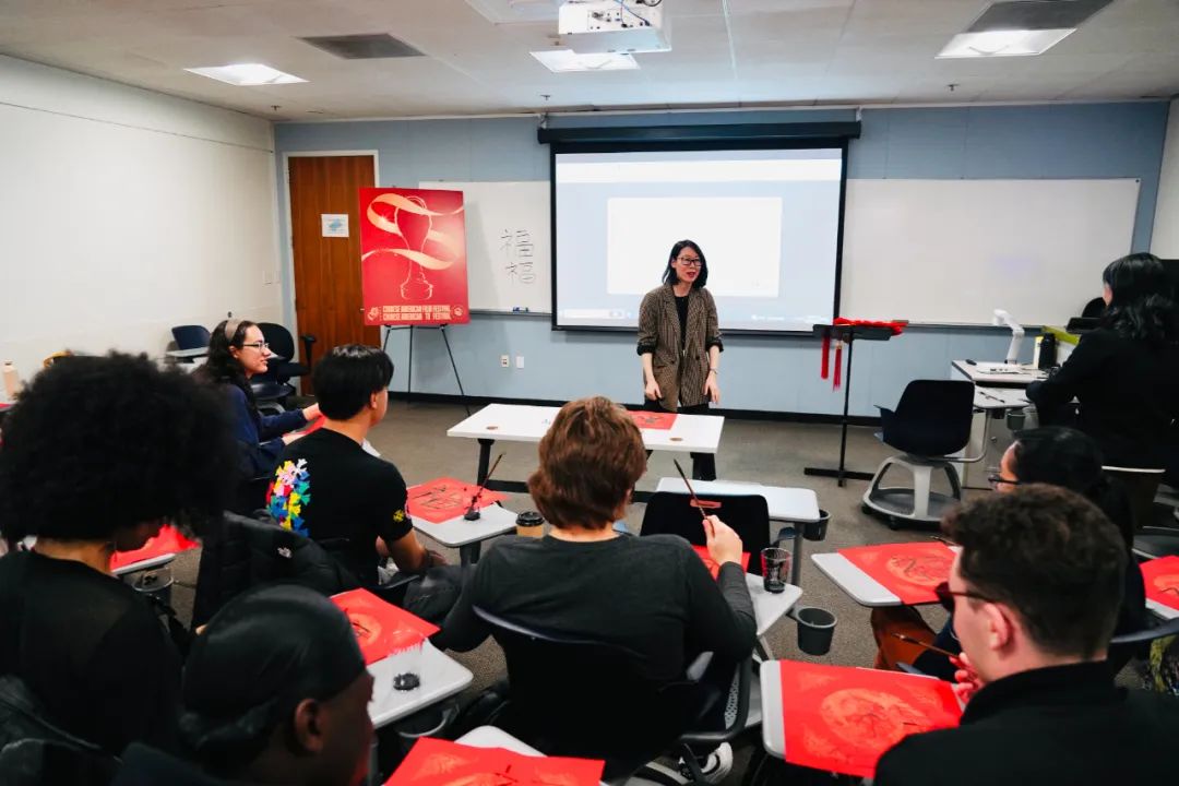 亚洲与亚裔美国人研究系副教授王艳杰博士向学生们介绍中国汉字文化