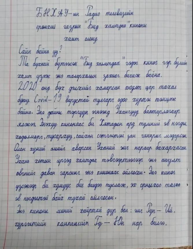 Mongolian Primary School Students Write a Thank-you Letter to the Cast of China's Epidemic Prevention Documentary "Be With You"