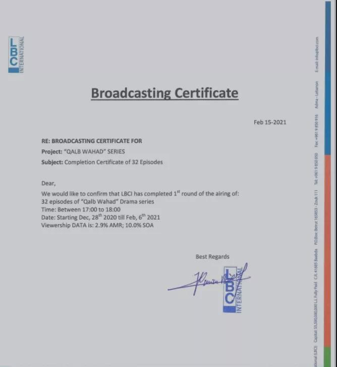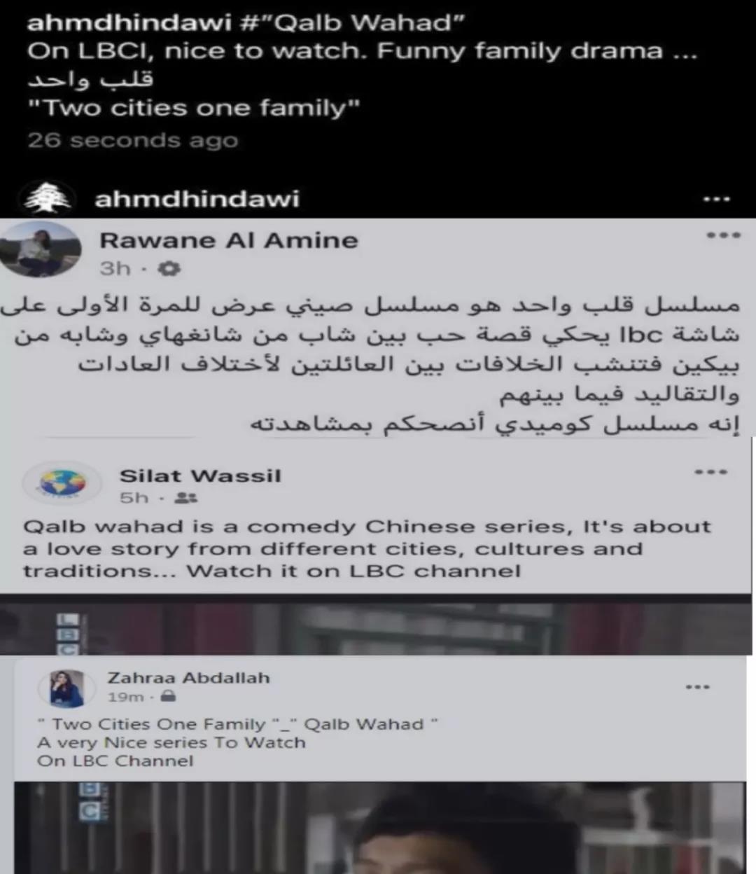 2020年12月28日,现代都市情感剧《双城生活》阿拉伯语沙姆方言版在黎巴嫩LBC电视台播出。这是LBC电视台首次播出中国影视剧。