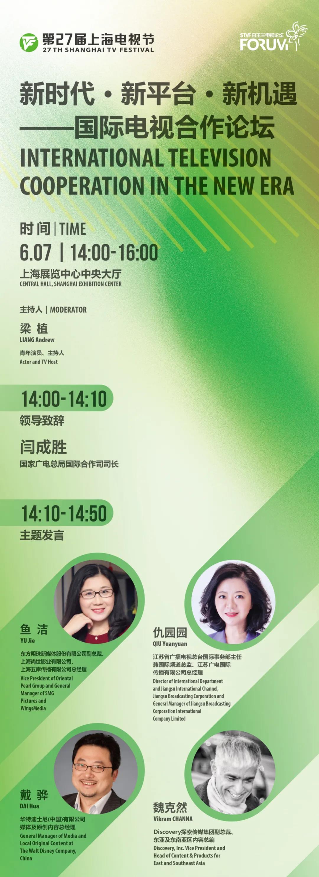 6月7日,第27届上海电视节白玉兰电视论坛国际电视合作论坛在上海召开,本场论坛主题为“新时代·新平台·新机遇”,重点关注国际合作的新渠道、新模式、新内容,展望新时代的发展蓝图,与中外各大影视公司及平台代表共同探讨内容创意与传播渠道国际化融合发展路径。该论坛由国家广播电视总局国际合作司指导,上海电视节主办,中国联合展台公众号及在线平台将全程分享论坛精彩内容。议程如下,敬请关注。